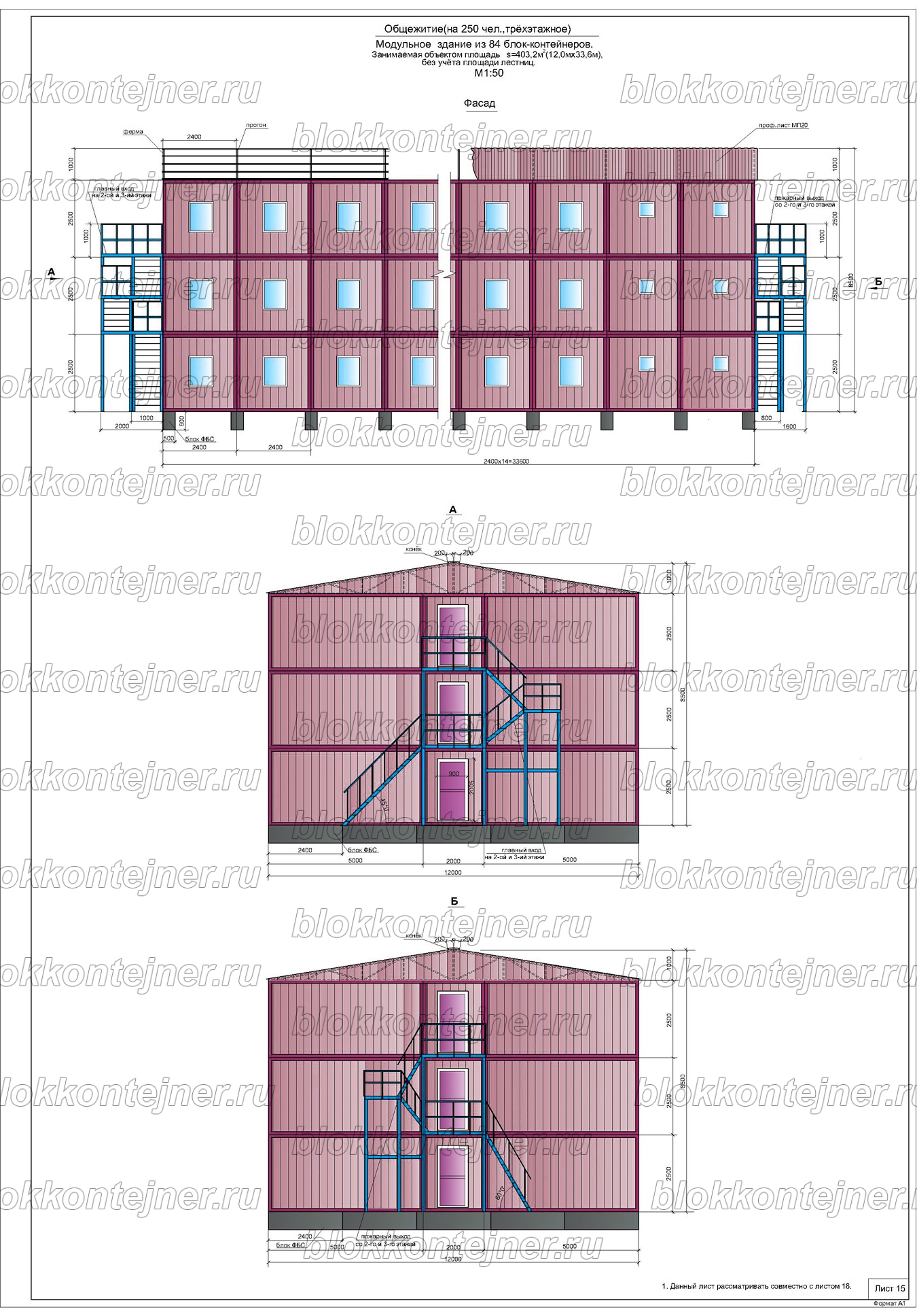 ГлавнаяПроекты готовых решенийМодульные здания → Трехэтажное общежитие на 250 человек из 84 БК